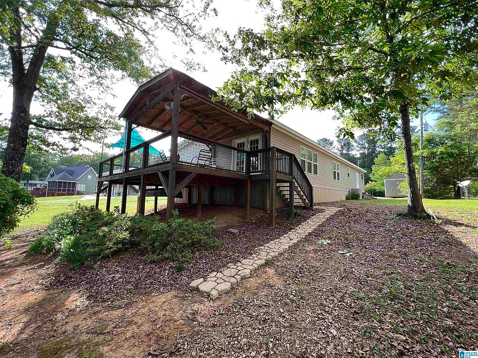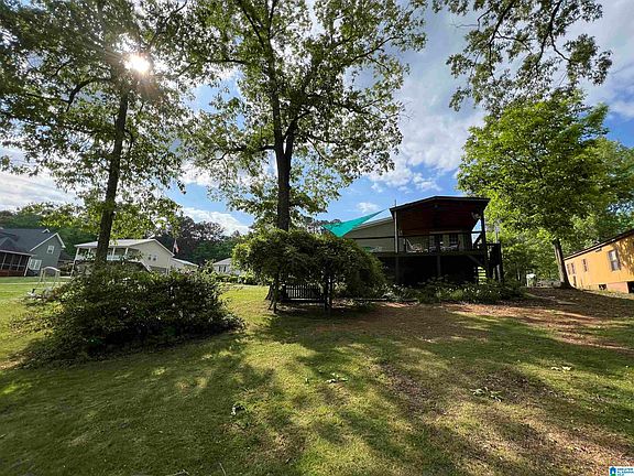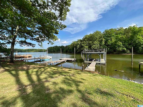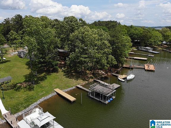 YEAR ROUND DEEP WATER! NICE LEVEL LOT WITH GREAT VIEWS. This home offers an open floor plan with a living room, large den area with a woodburning fireplace, spacious kitchen with an abundance of cabinets and island. The dining area has plenty of room for a large dining table. The master bedroom is king size and the bathroom features large tub, separate shower, walk in closet, tall double sink vanity. The second bedroom is furnished with 2 sets of bunk beds and a single (these can be purchased). It gets even better. The third bedroom is large enough for a queen size bed as well as another twin. The outside space is perfect for lake living. A large deck, half covered and half open is the perfect relaxing as well as entertaining space. The gentle sloping lot leads to year round water with a floating covered dock and a separate pier. THIS IS REALLY A BEAUTIFUL LOCATION WITH WOODED VIEWS, THE SLOUGH OPENS TO A LARGE COVE. THIS IS GREAT FOR LAKE LIFE.