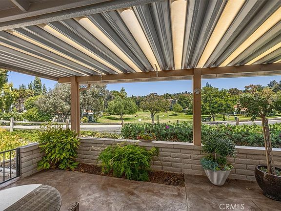 Fabulous Golf View VILLA FUENTE is in the senior 55+ of Laguna Woods Village Community. End unit patio home with one car attached garage is located on a single loaded street. Peaceful and Perfect! Home has a large covered patio with VIEWs of the 9 hole golf course! The expanded remodeled gourmet kitchen has quality upgraded cabinets, Granite countertops with full backsplash, ceiling light fan, recessed lights, double paned windows, and door to the attached garage. Laminate type flooring is in the kitchen, dining room, entry and hall. The living room has a sliding glass door with sliding Plantation shutters that lead to the back patio. A large skylight is in the living room and solar tube in Master ensuite bathrooms. The Master Bedroom has a sliding door with shutters that leads to the back patio. Large mirrored floor to ceiling sliding doors cover the closet. The remodeled master bathroom has double sinks, upgraded vanity and counters and a beautiful large custom shower. The second bedroom has a floor to ceiling large closet, carpet and windows with shutters. The guest bathroom has a remodeled shower. The style and design of this home are unique and offer a pride of ownership. Enjoy the amenities of Laguna Woods Village: 27 and 9 hole golf course, tennis, paddle ball and pickleball courts, 5 swimming pools, 800 seat theater, 7 clubhouses, Gate guarded security 24 hours, large fitness center, gardening center, RV storage, and over 200 clubs and organizations. Gate 10 is minutes away. Laguna Beach, shopping malls, toll roads, Saddleback Hospital, and more are within a short driving distance.