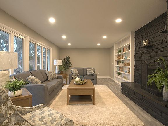 Stunning walk out ranch on almost a half acre wooded lot in the private Crestview Heights subdivision. Large room sizes, tons of space to roam. 3 bedrooms, three baths and laundry all on the main level. 4th bedroom, office, rec room and bar area in the finished walkout basement. Newer roof and windows. New kitchen and many other updates all done in 2022. Huge deck, patio below and a beautiful wooded view! Two wood burning fireplaces that can easily be converted to natural gas. Large attached two car garage with extra storage. Must see! Listing agent Michael Ingleby is also the seller and a licensed real estate agent in the States of Iowa and Illinois.