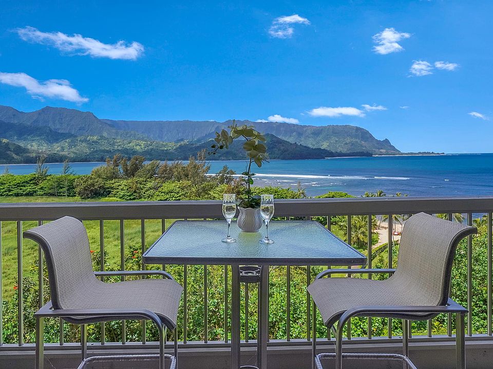 Newly remodeled 3 Bedroom, 3 Bath Condo with spectacular views of Hanalei Bay and Bali Hai at Hanalei Bay Resort. New paint, appliances, showers, art, lighting and most furniture. Spacious lanais off of bedrooms and living room overlooking the bay. Fully air-conditioned with ceiling fans in all rooms. 8 Tennis Courts, two pools, and private beach access. 6 month lease available. $8500K per month, including utilities, resort fees, parking and once monthly housekeeper.