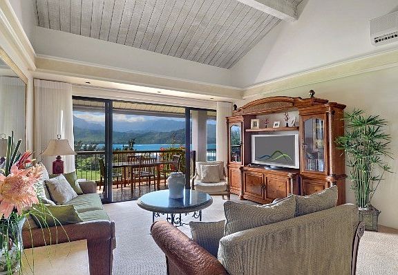 Location, View, Amenities, and Life Style - could not be better. Perched high on the ocean bluff over looking Hanalei Bay you can check the surf, keep an eye on bay activity, enjoy daily sunsets, watch the dolphins play and more. Come see where the Hanalei mountains meet the Pacific ocean and Hanalei Bay, pure magic! The unit encompasses the third floor (top level) with 3 bedroom en suites each with their own balcony viewing the extraordinary views. In addition there is a loft with 2 twin beds for those extra special little folks you may have visiting. Enjoy the many amenities Hanalei Bay Resort offers including six tennis courts, multiple pools including one with a swim up bar and a sand beach wading pool for the little ones, hot spa with cascading waterfalls, Happy Talk Lounge with music and sports screens, restaurant (opening soon), and of course a great beach for swimming, snorkeling, paddle boarding, surfing, or canoeing. Hop on the golf carts to take you to all the activities or help with your check in or out. This exceptional unit has the best views and is decorated with comfort and luxury in mind. Fully air-conditioned and is turn-key ready to enjoy or continue to vacation rent. Maintenance fees cover all utilities including electrical, water, and waste