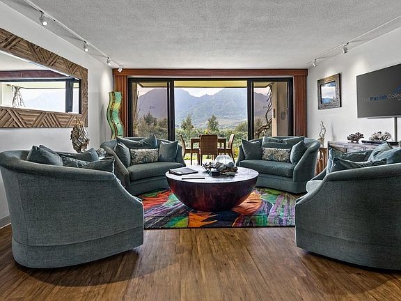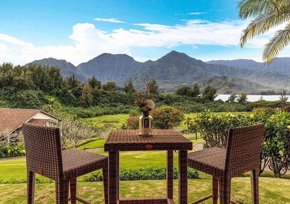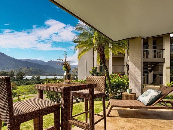 Don't miss this very special 2 bedroom/2 bath, luxury condominium at the beautiful Hanalei Bay Resort! As you enter #9123/9124 epic Hanalei mountain and waterfall views are perfectly framed through the wall-to-wall glass sliders. Spacious living area opens up to an oversized covered lanai stretching the entire length of the unit - sip your morning coffee or enjoy an afternoon Mai Tai while you enjoy the waterfalls and watch for rainbows! Escape indoors to the cool air-conditioning after a day in the sun. This 1,324 sqft condominium has been completely remodeled, is fully furnished, and tastefully decorated. Enjoy ground floor benefits of stepping right on the lawn but with the added advantage of this buildings elevated position offering views equivalent to top floor units in other buildings. #9123/9124 is also steps to beach path! Currently a turn-key successful vacation rental, but would also make a wonderful second home. The lock-out feature offers you flexible floor plan. Hanalei Bay Resort offers the North Shores finest amenities including an onsite dining, multiple pools with waterfalls, jacuzzi, and tennis. This Resort also offers guests a paved beach path to the beach and door to door shuttle service! Maintenance fees are all inclusive of utilities including electric, cable, phone and internet. Life doesn't get any better than this! Once you arrive at this paradise... you won't want to leave!