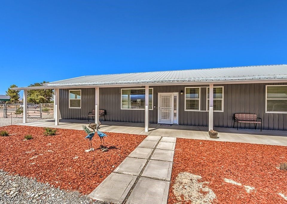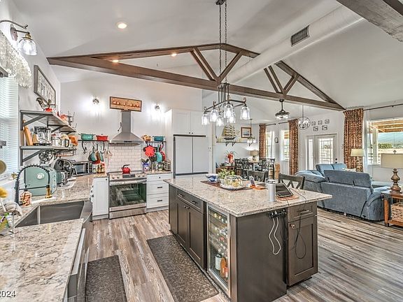 Discover unparalleled living on 1.33 acres w/this exceptional home. Built in 2021, home boasts modern construction, including 6x6 framing & extra insulation that keeps energy bills at a low $150. W/a low insurance policy cost of $450/yr, it’s an ECO choice for quality living. Home ft an expansive 1,800 sqft living area, highlighted by high-end LVT floors. Kitchen & bathrooms offer soft-close drawers, while kitchen is equipped w/ brand new appliances & undermount sink. Home’s practicality is complemented by its luxurious touches, like auto lights that turn on upon entry. Primary bed ft dual walk-in closets w/built-ins. Massive laundry room adds to its functionality, equipped w/front-loading machines, & full-size freezer. Home ft a 1,500 sqft workshop w/vaulted ceilings, fully built out & furnished w/bath. Workshop ft 2 motorized garage doors & storage w/RV hookup in backyard. Step outside to enjoy stunning pano mountain views, providing a serene backdrop to this well-appointed home.