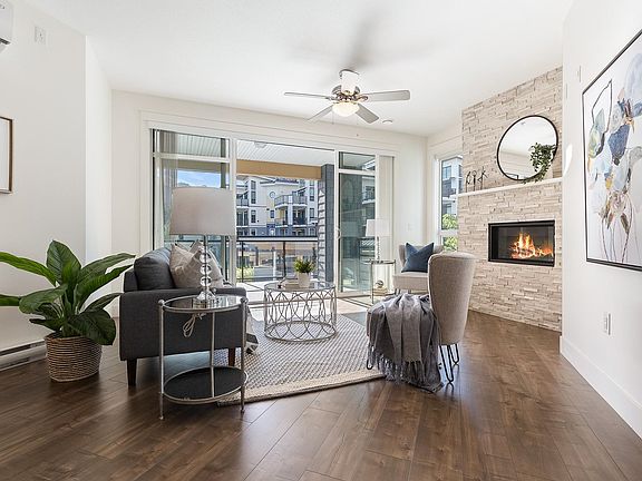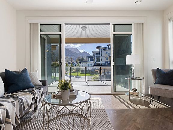 Stunning, like new, South facing 2 bed 2 bath condo at The Boardwalk. Walk out your front door to the banks of the Vedder River and the popular trails & parks. Beautiful south west facing suite with a large patio and floor to ceiling windows for all the natural light! Your new home features modern shaker white cabinetry with under-mount sinks, under cabinet lighting, soft close drawers, quartz counters (kitchen & laundry), & black stainless appliances. Tile & laminate flooring throughout. Tall 9 foot ceilings and a gas fireplace with superior finishes and fixtures. Custom California closets throughout. Suite has been owner occupied since day 1 and is well maintained, never been rented out. 2 pets allowed, 1 covered parking! Now it's your opportunity to live in this great neighbourhood!