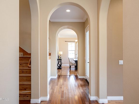 This fantastic unique property is located in the highly desirable area of Dos Vientos Ranch! Tucked away at the end of a cul-de-sac this home has a huge resort-like backyard with pool, spa, waterfall and slide. Enjoy breathtaking views of the mountains and Camarillo Valley all the way to the horizon! Watch spectacular sunsets every evening from the backyard, gazebo or the huge balcony!! This home boasts 5 bedrooms, 4.5 baths, office plus a bonus room upstairs. Masterfully expanded by almost 1000 SF to create a great room/family room with a wet bar and larger breakfast nook with a bay window overlooking the stunning backyard. The addition also includes a sitting area with a cozy fireplace in the primary bedroom. There's a downstairs bedroom and full bath for your convenience. The chef's kitchen features beautiful granite counters, center island with bar seating, a walk-in pantry, stainless appliances, double ovens and built-in refrigerator plus informal dining area. Formal living room, dining room, office and powder room complete the downstairs. The staircase leads you to the huge bonus room that could be a game room or upstairs family room. 3 ample-sized secondary bedrooms upstairs, one with ensuite bathroom and walk-in closet. The primary bedroom is a serene retreat with a fireplace in the sitting area opening to the large balcony. Step into the main spa-like bathroom with jetted tub, dual sinks, vanity, separate large shower stall and 2 walk-in large closets. The vast backyard has it all - Enjoy swimming in the saltwater, pebbletec pool with waterfall and slide, separate kiddie pool and heated spa. Grilling is easy at the built-in BBQ with a sink and ample counters. Spend time outdoors all year round in the covered patio with fireplace or while you sit around the outdoor firepit. Close to prestigious Sycamore Canyon K-8 School, park and hiking trails. This Majestic home is perfect to share magical moments with family and friends. It truly is one of a kind! Don't miss this one!