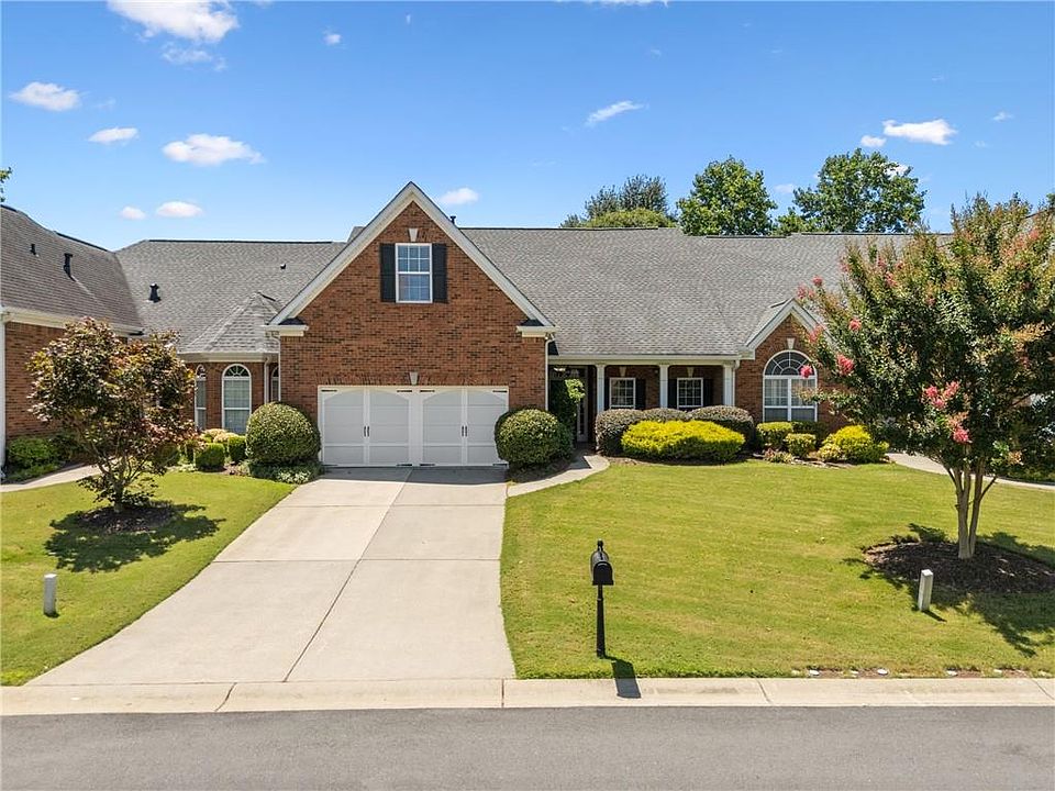 STEPLESS ENTRY TOWNHOME WITH PRIMARY ON MAIN IDEALLY SITUATED IN SUWANEE CLOSE TO ALL MAJOR CONVENIENCES. This home features everything you've been looking for - a primary suite on the main level, high ceilings with two solar tubes for plenty of natural light, all-new hardwood flooring on the main level, and fresh neutral paint throughout the interior. The open floor plan features a spacious kitchen open to the family room, a separate dining room, a breakfast room, pantry, and main level laundry room. Two secondary bedrooms with adjacent full bathrooms - one upstairs and one on the main level - allow you the flexibility to host guests or have a separate home office. Tasteful details like a solid wood cabinetry, stainless appliances, a gas range, marble fire place, arched openings, and generous millwork elevate the feel of this home. A covered front porch is the perfect place to relax and greet neighbors as they walk by. In the backyard is a covered patio and small yard enclosed by a privacy fence, perfect for a four-legged friend. This charming brick home has a two-car garage and perfectly level driveway. What more could you want?!