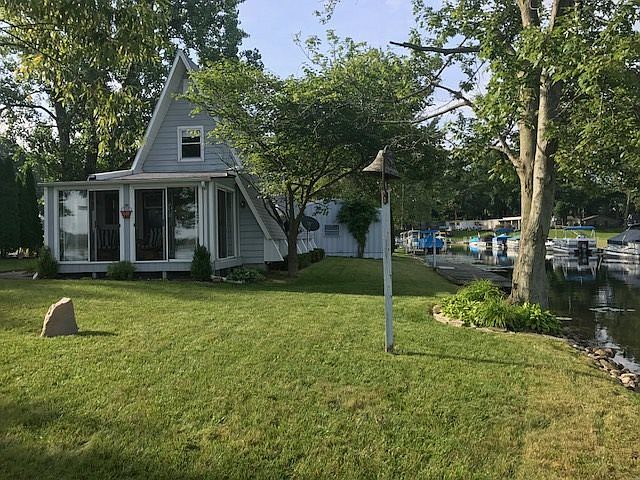 Wow what a beautiful view of Lake Pleasant from this A Frame home. 65 feet of lake frontage and 166 feet of channel frontage on Lake Pleasant. Open concept 2 bedroom 1 bath home, has been well cared for and is move in ready, being sold with most furnishing. Nice level lot with piers on both the lake front and the channel front for your boats and lake toys. Enjoy your morning coffee from the 3 season room watching the lake activity.