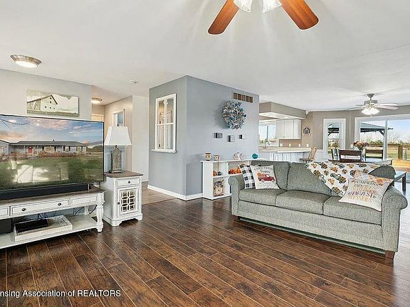 Gorgeous spacious ranch on 2.58 aces. offering nearly 1900 sq ft with 3 bedrooms and 2.5 baths. Spacious lovely primary suite and bath. great room with fireplace, 1st floor laundry. Pole barn, above ground pool, fruit trees. Recent updates, windows furnace, hw heater and well bladder plus 2 car attached.