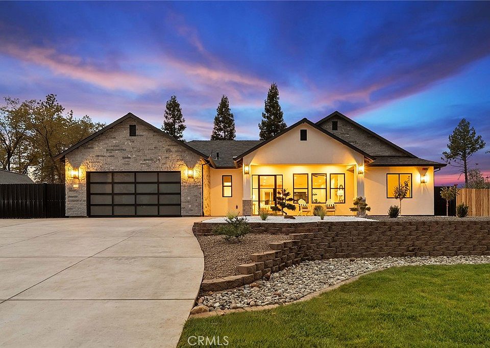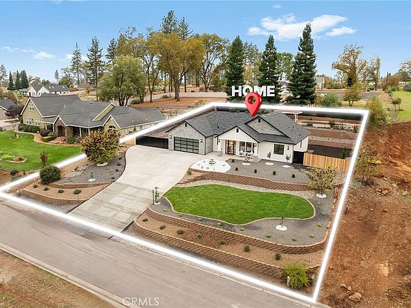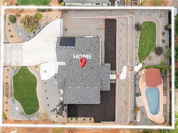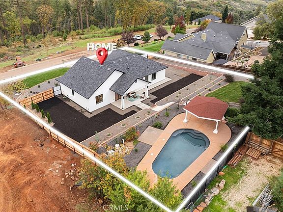 As you arrive at this newly built home with owned solar, the first thing you’ll notice is its serene setting—perched above Dry Creek Canyon with peaceful views of mature trees that frame the landscape. The approach to the home is impressive, with a wide concrete driveway offering generous parking, including dedicated RV access, and a beautifully designed front yard. Carefully crafted retaining walls define each landscape element—lush lawn, decorative rock beds, shrubs, and architectural plantings—creating a clean, modern curb appeal that complements the home’s striking façade. A large glass entry door welcomes you inside, where the open-concept design immediately expands before you. The kitchen, dining, and living areas blend seamlessly, filled with natural light from the expansive windows overlooking the backyard. The chef’s kitchen is both stylish and highly functional, centered around a substantial island perfect for gathering. Warm wood cabinetry pairs beautifully with modern neutral wall tones, while premium appliances include a double oven—one doubling as a microwave—a sleek cooktop with a pot filler, and a farmhouse sink positioned perfectly beneath a window with views of the pool and landscaped yard. Just off the main living area, the primary suite provides a peaceful retreat. The large bedroom offers privacy and comfort, while the luxurious en-suite bath features a standalone soaking tub, a glass-enclosed shower, and dual sinks—all finished in a fresh, modern aesthetic. Stepping into the backyard, you’ll find a fully landscaped oasis designed for relaxation and entertaining. Thoughtful plantings, clean hardscape, and an inviting pool create a private outdoor environment ideal for enjoying warm evenings or hosting gatherings. This is a rare opportunity to own a brand-new custom home thoughtfully placed among nature, featuring modern amenities, timeless design, and an exceptional indoor-outdoor living experience.