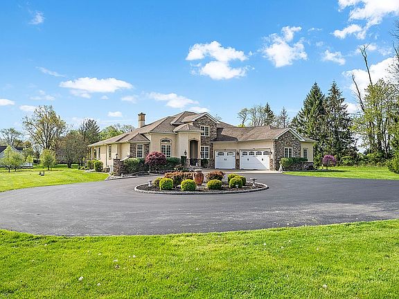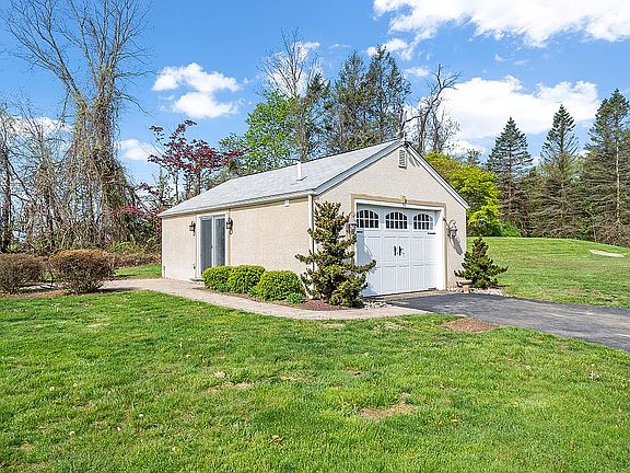 Welcome to your paradise. Beautiful Estate Setting with Main House and separate Guest House on 5+ Acres in a highly sought-after area of Buckingham Township. Perfect home for Family, Friends & Entertaining- this stunning Stone Front 4 Bedroom 4.5 bath 3 car garage home is what you've been dreaming about! Outstanding master craftsmanship is displayed throughout this gorgeous, one-of-a-kind custom home. As soon as you enter, there are amazing view of the great room with soaring ceilings through to rear covered patio and scenic back yard. Two home offices with french doors. Gourmet Kitchen open to breakfast area and family room featuring: large center island, stainless steel appliances, including Electrolux double wall ovens, Butler Pantry, Walk in Pantry and 2nd fireplace with Pellet Stove. French doors from Kitchen to expansive outdoor paver patio. The 1st Floor Owner's Suite with large walk-in closet & an Owner's Bath with double bowl vanity and large shower. This suite also offers access to a private covered patio area. The Second Floor has Bedrooms 2 and 3 with a full Jack and Jill Bathroom where each Bedroom has their own vanity. Bedroom #4 has convenient access to the hall bath with tile shower. There is a bonus room perfect for an office, nursery, play area, hobby room or peloton and tv! The possibilities here are limitless! Beautiful grand staircase with wood treads and risers and iron spindles take you from the lower level up to the second floor. The large finished Lower Level has soaring 10' ceiling height and windows throughout for natural light. It also offers a a full bathroom and walk-up egress stairs. Lower level has a Media Room, Game room and exercise area. The outdoor spaces make this a private oasis with extensive covered and uncovered paver patio areas with retaining walls and hot tub. Expansive outdoor living areas an oasis for personal enjoyment or lavish entertainment! French doors from the kitchen, family room and Owner's suite connect the interior and exterior living. Hot tub included. Oversize 3 car garage with epoxy floor. Over 4,500sf of finished living area in the main house plus a Separate Guest House or Home Office. Guest house features open floor plan with great room open to modern kitchen, private bedroom and full bath. The Guest house has a separate storage area and two entrances with a paver patio. All you have to do is to move in, put up your feet and enjoy! Every imaginable luxury feature flows through this masterpiece from Gourmet Kitchen to Gracious Outdoor Living. Close to Doylestown, New Hope shopping, recreation and restaurants. Top ranked Central Bucks School District. Stunning private retreat! Feels like a vacation without having to pack!
