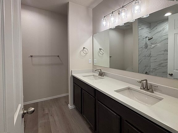 Welcome to this stunning Sapphire home, ready for quick move-in! Included features: a covered entry; a spacious great room with added windows and center-meet doors leading onto a covered patio; a dining nook; a well-appointed kitchen boasting white 42'' cabinets, a center island and a generous pantry; a convenient laundry; a lavish primary suite showcasing extra windows, dual walk-in closets and a private bath with double sinks; three secondary bedrooms and two additional bathrooms. This home also offers quartz countertops, luxury vinyl plank flooring and stone exterior accents. Tour today!