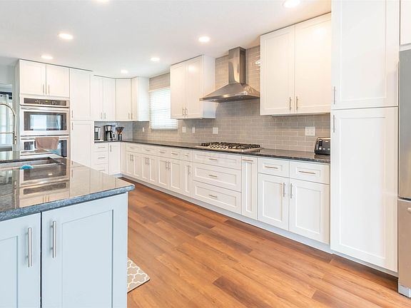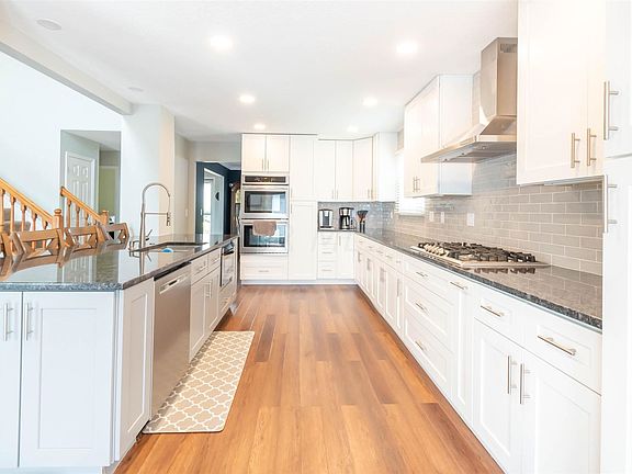 So much home for the price here! This 4 bedroom with 1st floor primary suite, has so much to offer, including brand new kitchen, wall oven, island sink, gas cooktop, under cabinet lighting, subway tile backsplash, 42'' cabinetry, hidden lower microwave, granite, stainless steel appliances and range hood, gray island and white cabinets, slow close drawers and pull out drawers, led can lighting. The home also boasts a new roof and gutters, vinyl floors, vaulted great room, fireplace, first floor laundry, deck, fenced yard, finished basement with full bath and wet bar, the list is endless!