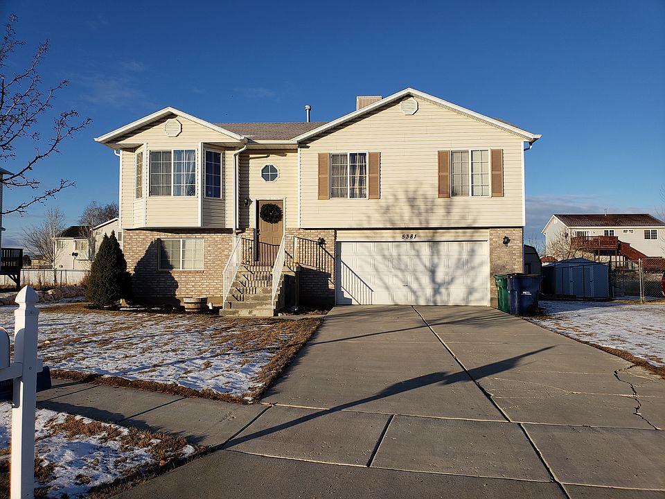 Vaulted ceiling in the living room, dining room and kitchen. Wider than normal hallways. Large deck overlooking Howard Slough. Walking distance to Meadow Creek pond. Fenced backyard. 10x10 shed with partial loft. Large 2 car garage. 3 bedrooms and 1 bath upstairs. Family room, bonus room and laundry/bathroom combo downstairs. Under stair storage. Water softener. Central air and new furnace installed in 2013. Secondary water. Needs some work but it's a nice starter home with great potential. Text or call 801-589-9328. Not available for response or viewing January 11th - 20th due to family obligations. Feel free to leave a message.