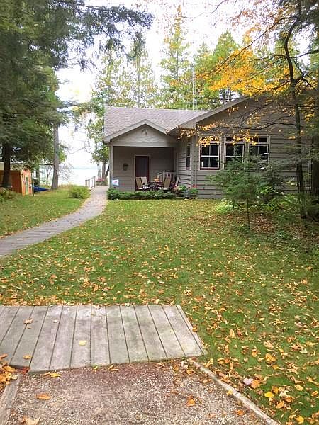 100 Feet waterfront on Clark Lake Door County WI Out the back door you are in the white Fish State Park hook up to the best trails in the State of WI Sand dunes and famous Cave point all in walking or biking distance in the winter time enjoy groomed cross country trails. This home is located on a dead end street with the trails to the dunes and Cave point. Besides the 1941 sq feet of living space there is a two story garage that could be easily turned into more living space, Clark Lake is a shallow lake that is wonderful for small children, Enjoy Fishing, Skiing, Sailing, and Kayaking, Or just enjoy sitting on the pier. This property also has a great investment poetical as you could rent it out between your visits to your Door County Home. But make no mistake this is a Year round Home. This Home has custom cabinets all throughout the home plenty of closet space and storage. The Newest addition was the Kitchen and dining room in 1998 the original was done in 1958 with other additions and improvements done through the years. . Property tax is $4,786.26 Upstairs 2 bedrooms with a living/more sleeping areaDownstairs Master Bedroom with Bathroom Two Full Bathrooms downstairsLaundry room with many custom Cabinets and counter work space with sink, with extra refrigerator.Large Kitchen with custom cabinets and island Dining Room Living room with fire place, And a Game room overlooking the lake.