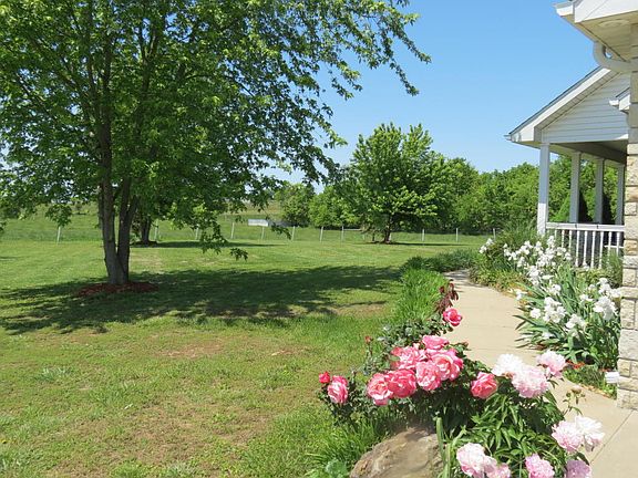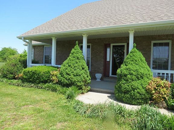 Beautiful Country Setting just at the Edge of Town!! 2466 sq. ft. Custom Brick and Vinyl Ranch Style Home and Shop on 10 Acres M/L!!! This 3 Bedroom, 2 Bath Home with Sunroom has all the extras. The open and inviting floor plan offers cathedral ceiling, hickory hardwood flooring or tile throughout, knotty alder cabinetry, stainless appliances, jetted tub, walk-in showers, gas log fireplace, duel fuel heating, central vac, water softener, storm shelter in the garage, covered front porch and a patio. Outside you will find a 32x30 shop with concrete floor, electricity and 3 roll up garage doors. 10 Acres of pasture. More land available! Click on the virtual media tour!