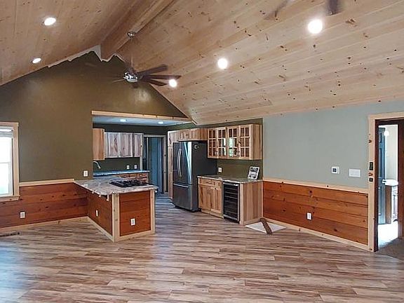 Reduced to sell! Motivated seller. Remodeled cabin with beautiful pine wood interior, vaulted ceilings, very open floor plan, cozy fireplace, hard surface in great room and kitchen. 3 Bedroom, 2 baths, 1614 square foot home. All bedrooms have carpet. Close to everything, downtown, shopping, restaurants, schools and more. The land is almost 1 acre (.88 acres) of property with a 2 car garage. Lots of parking in front of the house and the driveway to garage. Unfurnished basement can accommodate for 2 future additional rooms. This property's location would be great for an AirBNB. This home is truly a must see home. Seller motivated