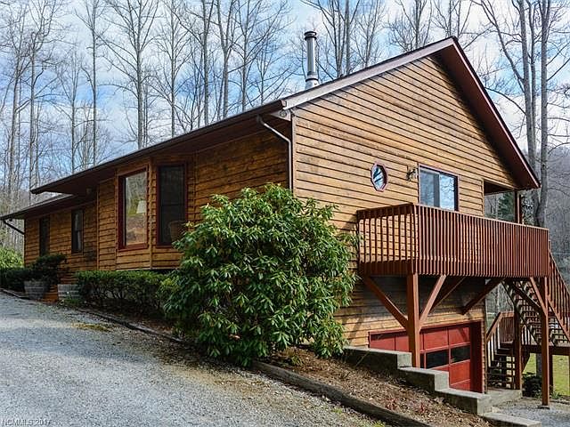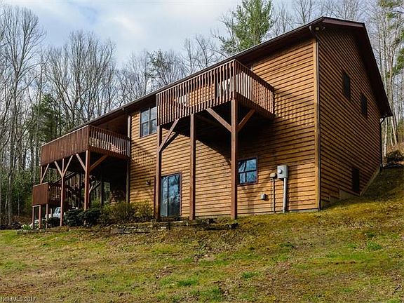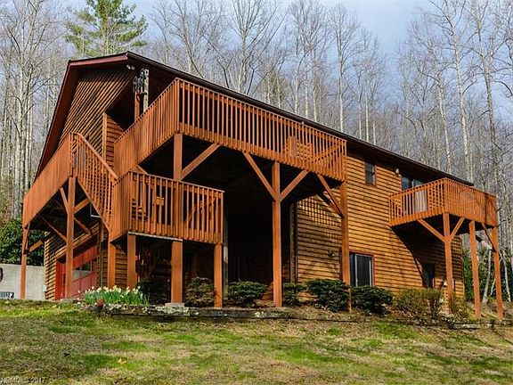 Wonderful private 3BD/3BA mountain home on almost 6 acres ,great Asheville access. Sale includes 4 lots! Lower land w/ 2 springs & creek offers opportunities: farming, gardening, a pond or just enjoy its beauty & mountain views from the decks nestled above the hardwoods & mountain laurel. A spacious, open home, kitchen island,large living room,wood stove & dining area. Spiral staircase leads to the lower level & 2 car garage. lower finished Space not included in homes square footage.