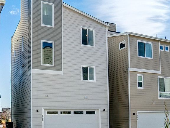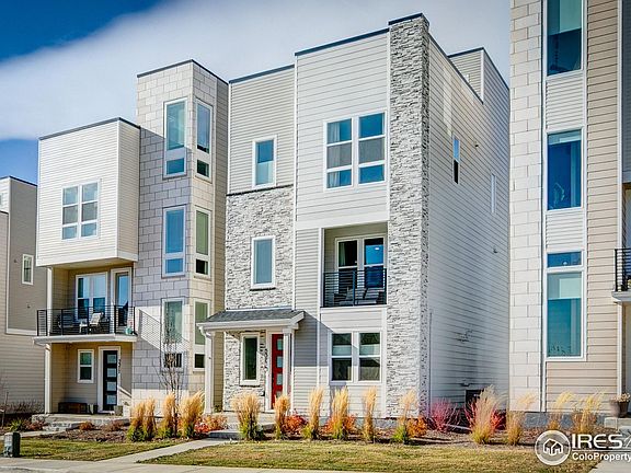 Views! Views! Views! Enjoy an urban feel in this highly upgraded home. Shows better than the model! Enter on the lower level to an office/flex room and large walk-in closet and access to the oversized 2 car garage with more storage. Head to the next level for a spacious great room, dining area, powder bath and a chef's delight kitchen. Access the covered front deck with another large storage closet. The kitchen boasts quartz counters, upgraded appliances, full tile backsplash and large island with loads of prep space. Notice the metal stair railings and engineered hardwood floors to add to the modern feel. The next level features the executive style primary suite with a HUGE shower, dual sinks and separate room for the toilet. Gorgeous tile throughout! The walk-in closet has custom built-in cabinetry, The guest bedroom has a large walk-in closet and a full bath with custom tile. The laundry is located conveniently near both bedrooms. The tour continues as you head up to the Roof Top Deck! Another large living area with 360 degree views of the mountains, the Flat Irons and downtown Denver! This home was positioned for the most privacy from other decks. The hard case and bracket for your TV stays with the home. All of this located just steps from a light rail station and close proximity to Old Town Arvada and I 70.