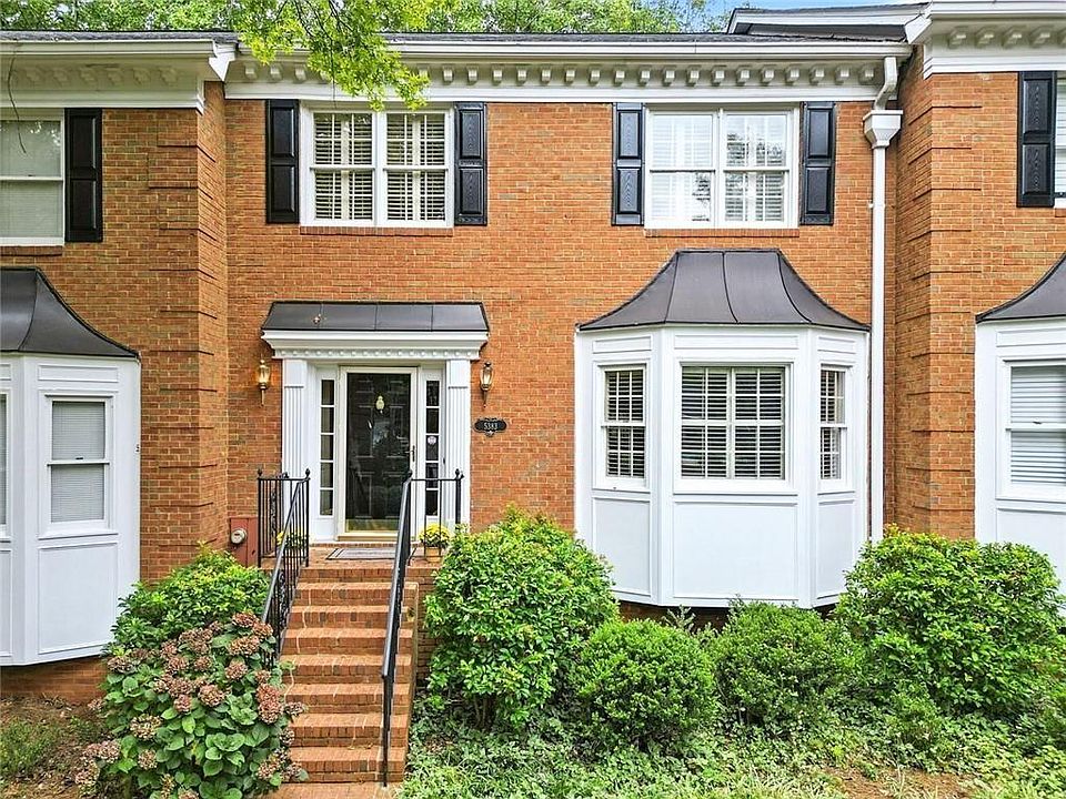 Brick elegance meets modern updates in this thoughtfully maintained three-bedroom, three-and-a-half-bath home with two spacious primary suites. The timeless exterior features stately black shutters, crisp white trim, and a welcoming brick stairway framed by lush landscaping, all while located in a quiet cul-de-sac surrounded by trees. Inside, the kitchen offers granite countertops, stainless steel appliances, and abundant cabinetry, plus a built-in desk for organization. A pass-through window connects the kitchen to the living space, making hosting effortless. The living room is anchored by a gas fireplace with a detailed mantel, flanked by built-in shelving, and illuminated by French doors leading to a bright sunroom with skylights. Hardwood floors and crown molding flow throughout the main level, while the finished basement provides fresh flooring, recessed lighting, and barn doors—ideal for a media room, home gym, or office. The fully renovated lower-level bath showcases a marble-topped vanity and a glass-enclosed shower with custom tilework. Upstairs, two primary bedroom suites offer generous layouts, walk-in closets and private baths. Additional features include a two-car garage with high ceilings and an abundance of storage. Enjoy a low-maintenance lifestyle with yard care and exterior upkeep covered by the homeowners association. The community pool is just steps away, and you’re within walking distance to Dunwoody Country Club, coffee shops, groceries, restaurants, and more. Located in the high sought after Vanderlyn Elementary School District.