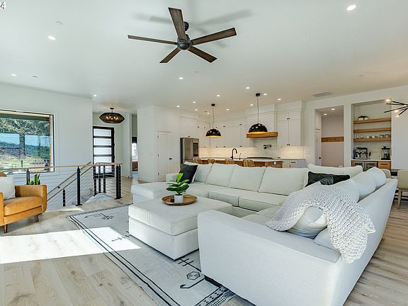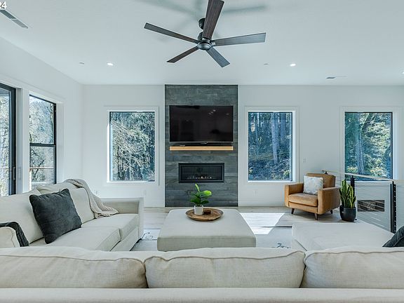 Welcome to this stunning 5-bedroom, 3-bathroom home boasting 3,753 square feet of luxurious living space. The upstairs area comprises 1,872 square feet, while the downstairs offers 1,881 square feet, including three additional rooms: a 154 sq ft sauna room, a 126 sq ft playroom, and a gym. The gourmet kitchen is a chef's dream, featuring built-in appliances, beautiful quartz countertops, a pot filler, a wine fridge, and a wine/coffee bar. The kitchen seamlessly flows into a great room with a gas fireplace, creating a fantastic open floor plan perfect for entertaining. The great room leads to a covered deck, providing an ideal space for outdoor gatherings. This home is equipped with hypoallergenic wool carpet and eco-friendly engineered hardwood floors throughout. The washer and dryer are included for added convenience. The backyard is designed for entertaining, featuring a hot tub, turf in a fully fenced yard, plumbed gas on the patio for BBQs and has built in garden shed on the side of the yard under front deck. Additional outdoor features include a gas line for heaters on the deck and covered patio, and electrical plugs in the soffit for holiday lighting or other needs. Inside, you'll find Hunter Douglas black-out blinds, upgraded light fixtures, a Point of Entry (POE) system for Ethernet, and network hardwiring in each room. The home is also equipped with a generator that powers the entire house and has electric car hook-up capability in the garage.The home is located in close proximity to the apex of hiking trails, just 10 minutes from the University of Oregon and Lane Community College, and only 2 miles from Edgewood Shopping Center, this home is ideally situated. The perfect home when seeking both luxury and convenience.Experience the perfect blend of comfort, modern amenities, and an unbeatable location in this exquisite home.