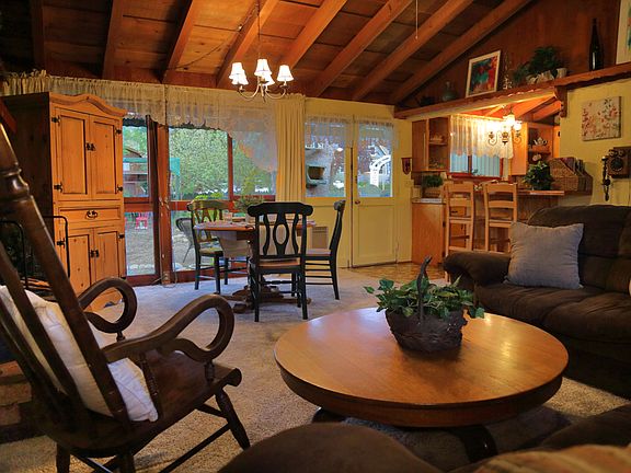 A lovely home 2 bedroom and 2 bathroom. High beam ceilings in the Living Room and floor to ceiling new duel pane windows blinds. New carpet a year ago. Room to garden and relax under the old oak tree. Wonderful neighborhood. Easy access to highway and 1 mile to our magical mountain village. 1 or 2 people. Tenant responsible for wifi,cable,electric, propane and water. Credit check required. and references. Security Deposit required.Can be fully furnished.