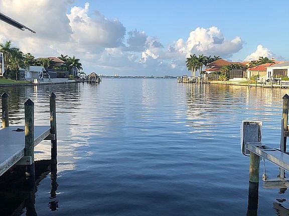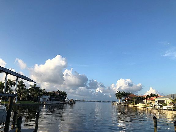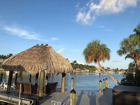 5384 Colonade Court is listed as a Premier home and future building site with unobstructed views of Caloosahatchee River and Fort Myers while being protected from the river currents and winds. This home site is one of a kind and a must-see for the discriminating buyer wanting a waterfront oasis while enjoying the water toys at their pleasure. Just 100 yards from the channel yet protected from winds and currents that allow your boater to dock their vessel with ease. Owner has 32’ Cobia with twin 300hp that docks perfectly on the 16k lb. Dolphin Boat lift with custom cover. There is a 2nd lift to accommodate smaller boat or water toys with (7,500 lb). Enjoy the extended 30’ sun decking or Tiki Hut as your personal sunshade while you toast another incredible sunset. 5384 Colonade Court is like no other lot in Cape Coral. With Southern Exposure allowing sunshine the entire day on your pool and sundeck. This lot allows you to enjoy the current home while planning to build your dream home with Master Bedroom overlooking your private waterfront. The dock is configured for boats up to 38’ (on lift), or customize it to fit your pleasure yacht. Composite decking makes this maintenance free waterfront a thing of beauty to enjoy sunsets with your family and friends. Dock pilings equipped with LCD multi-color lighting to suite your mood. This amazing, one of a kind property includes recent Engineering soil survey to take to builder/architect meeting for your master build. Current owner had previous plans drawn for their 6,000 sq ft masterpiece (see drawings on site).
