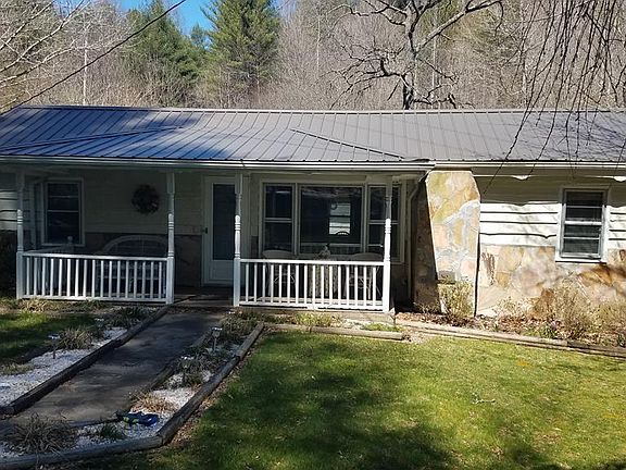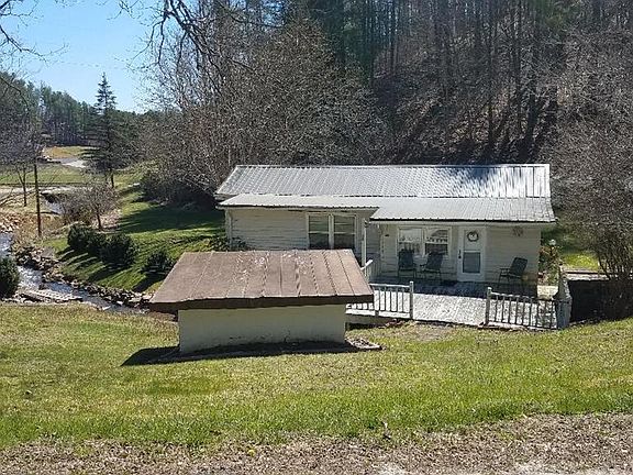 Cozy mountain cabin with a large porch to enjoy the beautiful creek running through the property and large track of land approximately 14.47 acres +/- for future home, farming etc... Single level home has 2 beds & 1 bath, dinning room, L shaped kitchen with island and spacious living room. Comes with an oversized garage/workshop, can-house and a barn on upper acreage. The acreage has several building spots with nice views and level areas for gardening. Home is gravity fed from a spring with a 500 gallon reservoir. This property is a great value with lots of options.
