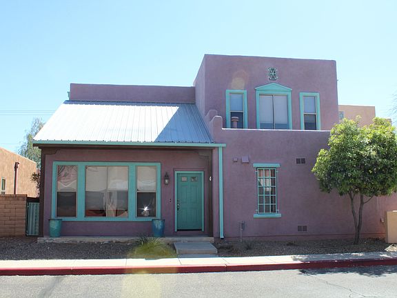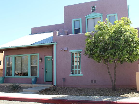 Tucked away in gated Presidio at Williams Centre this community has the ambiance of a Mexican Village w/ community architectural details including front porches, ''tin'' roofs, clustered units, and bright SW colors w/ a wonderful ''village square'' consisting of a beautifully landscaped community pool area complete with covered ramadas and bbq area. Main floor does have a large bedroom and bath. Second floor has spacious master, 3rd bedroom, guest bath and a den which could be brm 4 (no closet). Delightful loft area has handcrafted wrought iron screen and gate to keep little ones safe. Newer Granite counter top. This home has N/S orientation, neutral colors, 18x18 tile floors, GE Profile range, S/S dishwasher, lovely dining area, ceiling fans, covered back patio in yard. An elegant in-town retreat!