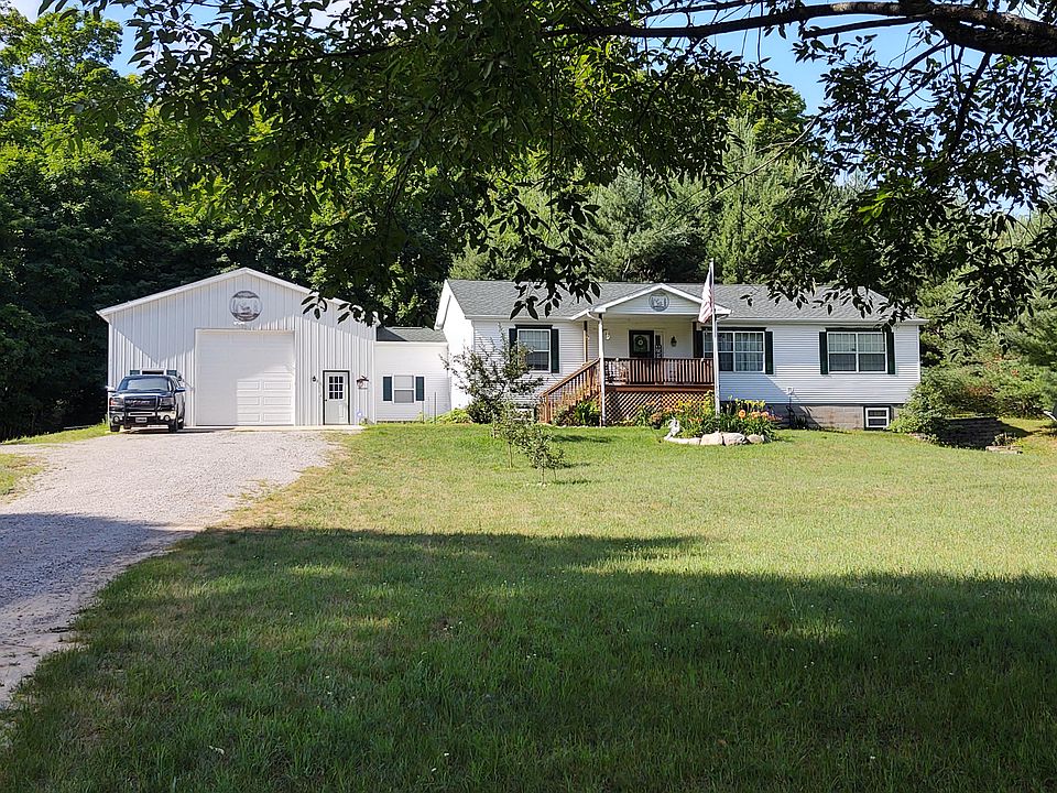 Perfect home to enjoy the seclusion and quiet on the covered front porch with your coffee in the morning and the rear deck in evening. New carpet with premium padding, like walking on a cloud in June 2020, New Trex rear deck in August 2020, New furnace & central air (maytag) in July 2020, New washing machine June 2020, New dishwasher (GE) August 2020, New gas range, micro & refrigerator 2019, New bladder tank July 2020, 2 year old pellet stove in the basement, New Summer 2020 deluxe deer blind, Huge walk in closet, oak kitchen cabinets, 5 ceiling fans upstairs, one in basement ,attached 32 x 40 pole barn with 12 x 12 insulated door & 14 foot walls, Concrete approach, Fenced back yard, just a short walk to 80 acres of state land. Pride of ownership is reflected in every corner of this home