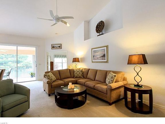 C.12020 - Well sought after neighborhood in gated Carlton Lakes. Cypress Point is a quiet street of 12 coach home buildings. Each residence is an end unit with plenty of natural light and all have garages. The buildings in this neighborhood have recently been cleaned, painted and the roofs are repaired and fully maintained. The street of Andover was recently paved and brick paver have been added to give this neighborhood a wonderful curb appeal. Cypress Point has its own pool and is within walking distance to the Carlton Lakes club house, tennis courts and fitness center. This residence features 2 screened lanais, storm shutters, a beautiful lake view and is meticulously maintained. New AC in 2014 and new hot water heater in 2015. Large master suite, closet built-ins and separate laundry room. All bedrooms have access to their own bath. Great north Naples location. Room sizes from prior MLS. Furniture package available at an additional cost, inventory list attached under supplements.