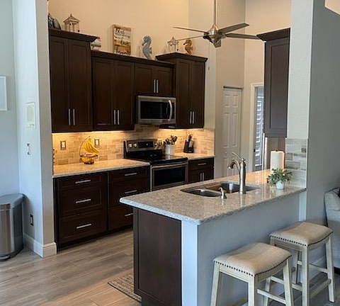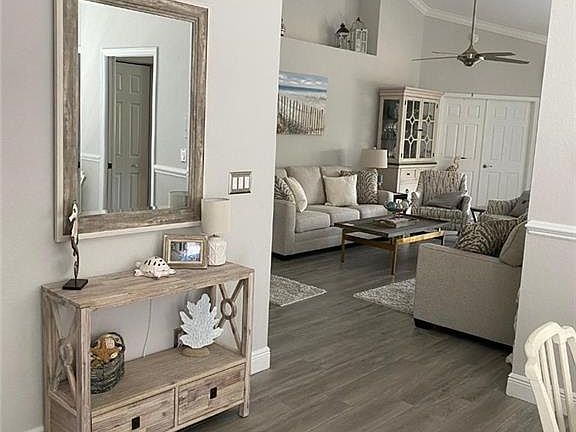 Looking for ZERO updates? Then this is the one! You will love this spacious and bright Carriage home model with updates throughout. Some of the upgrades include new Hunter Douglas blinds; wood-look porcelain tile in the living areas; 42" solid wood kitchen cabinets with soft close and pull outs; dual oven; LG appliances; refrigerator with 2 ice makers; quartz countertops in the kitchen and bathrooms; waterproof & scratch proof bedroom flooring. 2nd lanai space converted to a home office with lots of natural lighting. And if that is not enough, there is also a NEW ROOF! Perfect for those who now work from home! Carlton Lakes is an amenity rich community offering several pools throughout, a clubhouse, tennis courts, tree-lined streets for walking & biking, bocce, an exercise room and much more! You will feel at home immediately so do not pass this one by.