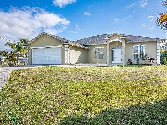 BRAND NEW ROOF! 1 week ago! If you like owning a home sitting on 1 Acre & NO HOA then this home is perfect for you. Located in Canaveral Groves, enjoy privacy & country style living and still be less then 10 minutes from Interstate 95. Located in the Heart of Canaveral Grove off of the paved road of Citrus Blvd this home has the perfect location. Enjoy the open concept & split floorplan. Great features include oversized closet space in all bedrooms, plenty of kitchen cabinet space, natural light coming from large front windows, ceiling fans located throughout the whole house, diagonal 18 inch tile, knockdown paint on all walls & ceilings,vertical blinds on all windows, storm shutters,gutters,freshly painted exterior, long driveway,tray ceiling in master bed,sliders in master and family room which lead out to a very generous sized lanai. Enjoy the view of seeing no neighbors behind yor home. Many possibilities on what you can do with all this land.