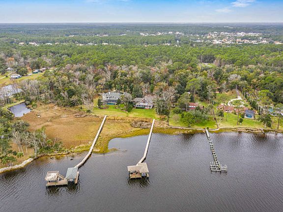A rare and unusual opportunity to own a piece of history on the Intracoastal in a central yet very private Jacksonville location. The 4+ acres exude Old Florida with a long dirt road entry, oak trees and wildlife. Deer sightings are common. The historic home, built-in 1902 in Avondale and later floated down the St Johns River to this location, holds character and craftsmanship unseen in today's homes. The interior of the house is richly finished with curly pine and coffered ceilings with a variety of distinctive decorative patterns. Eight fireplaces radiate the warmth and hospitality felt throughout the property. The home overlooks the water and a new and finely built dock with two boat lifts. Zoned top-rated St Johns County Schools.