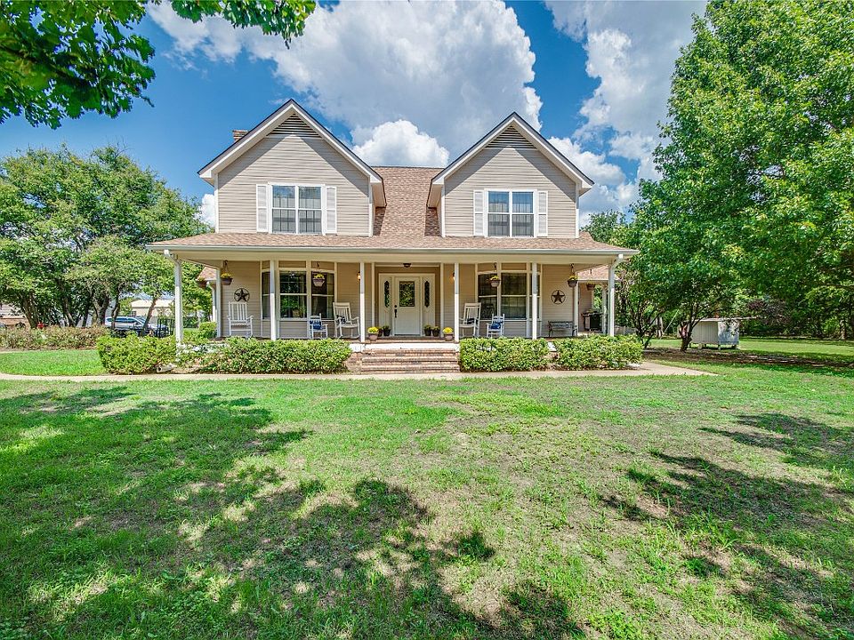 Are you looking for a place with acreage, a place with lots of trees, a place with a guest house, then this is a property to see. The main home is charming with a lovely front porch to pass time rocking and inside has 4 bedrooms, a nice open kitchen and breakfast area. This property makes you feel as though you are in the country, but really it is in the city. The added bonus is the original 1967 house is also on the property and it was converted to have two separate entrances that may be used as a guest house or your work from home office. The guest house has once side with two bedrooms and the other with a single bedroom, both have kitchens. The property has a dog fence, a covered deck, an electric gate, a shared well, a shed, lots of privacy and the list goes on and on.