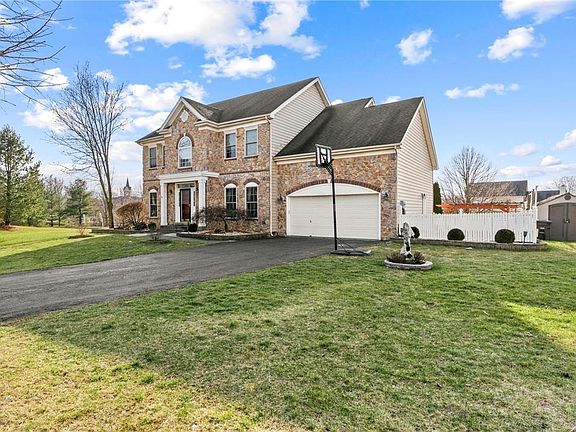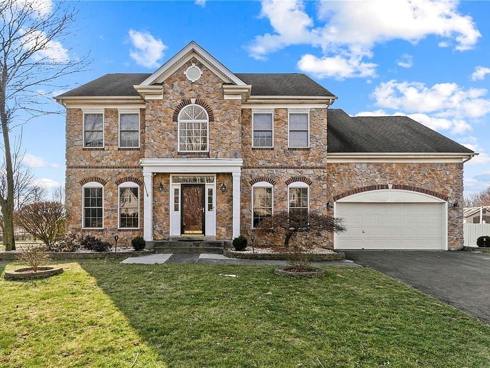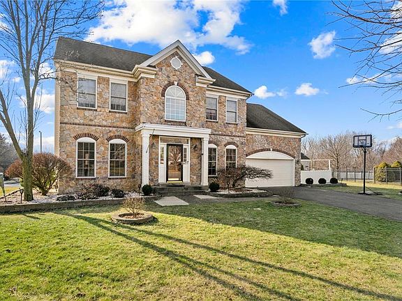 End of the Cul-De-Sac is the perfect setting for this incredible center hall Colonial home in the sought after neighborhood of Hanover Crossings. Offering gorgeous stone front this property’s exterior is further accentuated by a lovely portico and Anderson windows that brings this home’s exterior look together. Exterior offers patio with garden and pergola. Inside offers comfortable living with over 2700 square feet of living space. Many great features including: hardwood flooring found throughout the house (only a few years old) with tiled bathroom and kitchen area, modern appliances, surround sound, central vacuum and Corian kitchen countertops, gas fireplace, THREE Walk-In closets, lower level laundry, and many more features included! Route 22, Interstate 78, and Route 33 are all minutes from this property for local or long distance commuting. Convenient location for shopping, with a grocery shopping walking distance from this property!