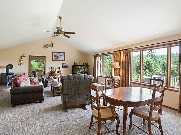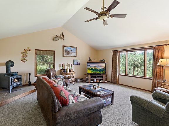 Custom Built Rancher on over 33 Acres of Private Land. Natural Woodwork, Cathedral Ceilings, Kitchen w/ all the Appliances, Master BD has walk-in Closet & Full Bath, Great Room w/Wood Burning Stove, all Main Floor Living, Watch the Wildlife from the Deck, Spend the Day in the Shop, Barn, Chicken Coop. Land is Treed w/some Pasture. Property is close to town, Great Animal Set-up as Property is Cross Fenced with Year Round Creek. Possible to divide 20 Acres to build another Home. *20 Acres are in Timber.