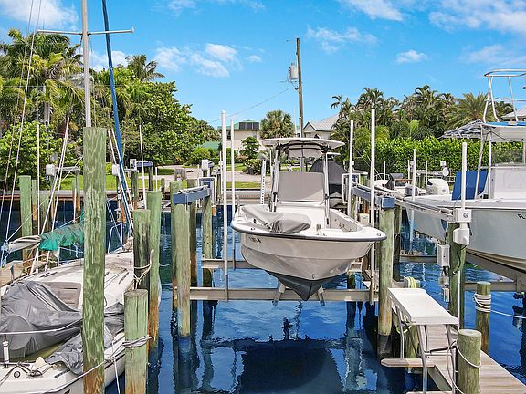Welcome to your dream oasis by the water in Rocky Point Estates. This home comes with a private, deeded dock and 10,000 lb. boat lift with access to deep water. This 4-bedroom, 2-bathroom Key West style home boasts a newly renovated kitchen with granite countertops, subway tile backsplash, stainless steel appliances, and white shaker cabinets. The serene outdoor living space includes a screened-in pool enclosure with an outdoor kitchen, built-in grill and bar, perfect for year-round gatherings. Additional highlights of this fantastic property include fresh interior paint, plantation shutters, engineered hard wood floors, 24k Generac generator with 500-gallon propane tank, new vinyl fencing, newly resurfaced pool, brand new pool equipment, and newer metal roof making it move in ready!