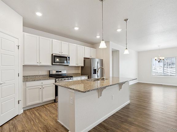 Step inside to find an open, modern floorplan which maximizes functionality. The spacious kitchen features granite countertops, stainless steel appliances, and a large island with bar seating that opens seamlessly to the living and dining spaces.