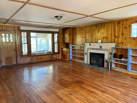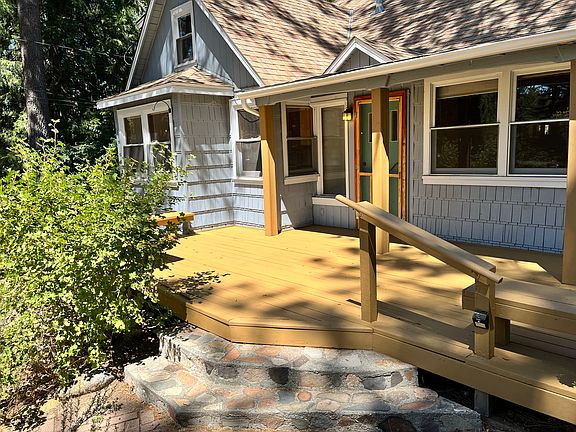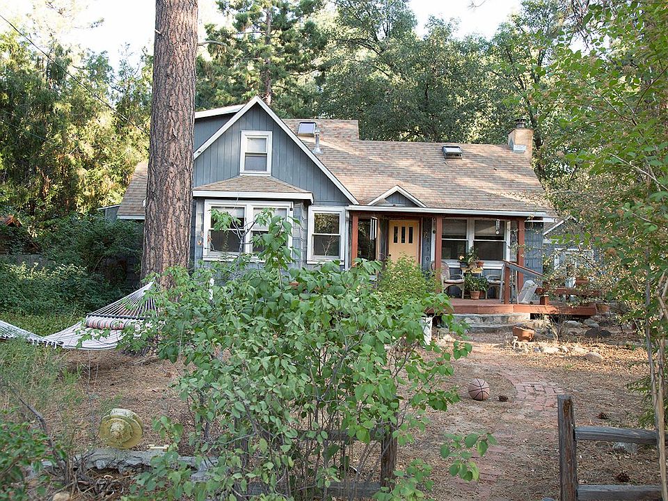 Four bedroom house on .49 acre, with the Idyllwild Creek, and County Park for a backyard. Located on a quiet dead end street, there are great quiet and respectful neighbors. The 2 upstairs bedrooms have some angled walls, matching the roof line. The living room is large with a wood stove insert in the fireplace for efficient wood heat. The kitchen has a teak dining room table that seats 6-8. The water heater is in-demand, keeping propane costs down. The thermostat is digital, and accessible from your phone. There are 2 in room AC units. The walk to town is very close, just 2 long blocks. The lot is level, with the fire dept. up the street, it is one of the first streets plowed in a snowstorm. There is new carpet and paint, fenced in backyard, includes washer, dryer, dishwasher, and some furnishings. There is a good driveway for off street parking. The garage studio is not available, occupied by another person. Owner pays utilities, and bills the renter each month, due with rent on the first of the month. Gas, electricity, water, and wifi averages $550 if careful with gas and electricity, winter costs can be much higher. Deposit for one pet is $250, one dog max, no cats. No smoking inside the house. There is an open front deck, and screened in back porch, with a small fenced back yard. The driveway is long enough for 3 cars, wide enough for 2 cars at the front. No parking on the grass. Wood pile needs to be away from the house and covered. In Idyllwild, there is no fee for tenant to take trash, recycling, and yard waste to the dump, or they can arrange for a pick up service. Tenant responsible for some yard abatement. All maintenance needs must be communicated to the owner as soon as they arise. Owner will take care of needs in a timely fashion. Owner will give notice at least a day in advance for visits, and reserves the right to enter property if needed for essential maintenance.