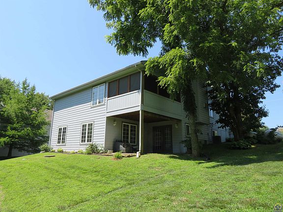 Fantastic 3 bedroom, 3 bath home on beautiful, private Lake Dabinawa. Eat-in kitchen, dining room/living room combo with vaulted ceilings, gas log fireplace. Living room opens into covered screened deck overlooking the lake. Main level primary bedroom suite with double walk-in closets, jetted tub and entrance to screened deck perfect for enjoying your morning coffee. Full walk out basement with additional living space and secondary primary suite. Relax on your covered patio with lovely lake views & additional storage/mechanical/laundry room, enormous storm room/storage room. 2 car garage, beautifully landscaped lot. Come enjoy lake life, close to Lawrence and all amenities.