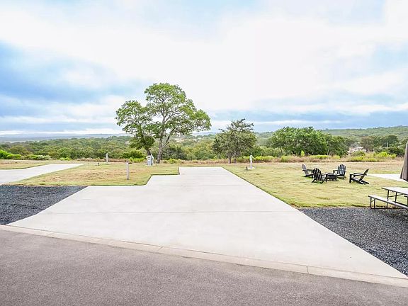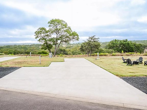 Excellent hill country views and a very private location in the resort. in site with hill country views and lots of privacy. Custom concrete pad with additional bumps outs for extra seating, and room for an additional parking spot on the pad. Full hookups (water, sewer, power) 50/30/20 amp.