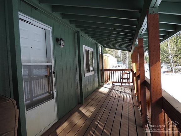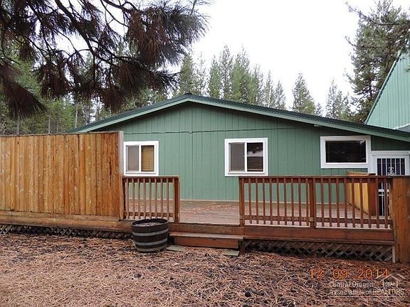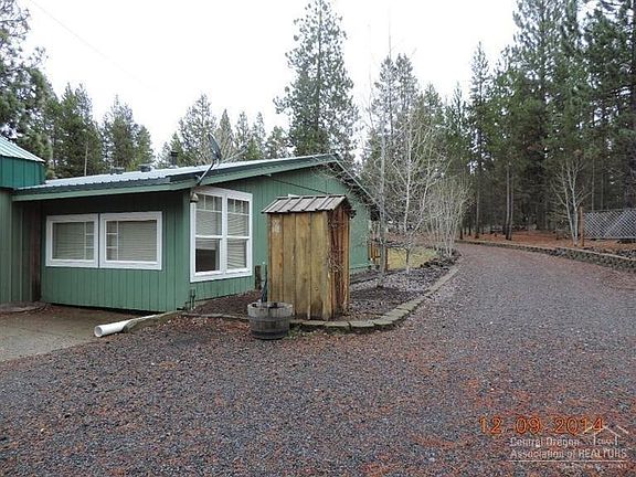 MORE THAN MEETS THE EYE! This property borders public forest lands, near La Pine State Park, double-wide home has attached 30x30 garage/shop, with separate storage room & cold room for the hunters game! Great back porch / breezeway area and private wood deck off the side of the house. Landscaped w/grass, aspen & evergreens! Fenced in chicken coop or small animal corral, horse-shoe pit. Fully fenced with gated entry, front & rear. AS IS sale. You have to see this one!