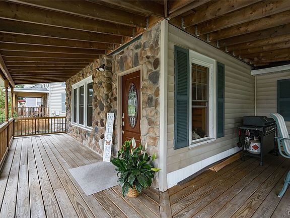 Located walking distance to LACS school, fair grounds, and down town, this home offers 3 bedrooms with an additional room upstairs that is perfect for an office space or storage. The back addition was built in 2006. The master suite and down stairs family room are from that addition. The spacious master bedroom has a full bathroom and walk in closet. There is an additional full bathroom on the second floor. Both bathrooms have custom tiled showers. The first floor consist of a living room, kitchen, dining room, and the family room. The family room has a stone natural gas fireplace, gleaming hardwood floors, and a patio door that leads out onto the deck. The kitchen offers seating up to the counter top, gas stove oven/range, fridge and dishwasher. A great kitchen for any cook with an open concept to the living room and dining room. There are 2 entries into the basement. The 2006 basement is partially finished. All this sits on a large village lot with an older garage that has 1 bay for a vehicle. You can relax on the front porch that has space for a patio table. A bonus... this home is on the parade route that takes place in July. Enjoy the parade from the comfort of your home.