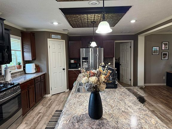 Beautiful Deer Valley Manufactured home (approx 2015) with five Acres M/L located in Marmaduke, Arkansas. Located close to school and local amenities. This home has four bedrooms, 3 baths, and approx 2880 sq ft. You will love the open concept living/dining combination with wood burning fireplace. Enjoy prepping family meals in the large kitchen with huge kitchen island. The kitchen island is perfect for homework after school, and perfect for entertaining family and friends, or family mealtime. You and your family will appreciate the two living spaces, perfect for watching the game in one room, or enjoying reading a book by the wood burning fireplace in the other living space. The bedrooms are large and have lots of closet space. The primary bedroom has a large ensuite with garden tub and shower as well as large walk in closet. If you are looking for property with some acreage this is perfect with five serene acres. Home is located off the highway and has a very convenient location. Country living close to town and school. Heating and air unit was replaced last year. Don't wait to see this beautiful home, call today to schedule a time to see it!
