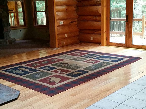 Custom Built Log Home, Beautiful private wooded 2.5 acres situated on 295' Pine River Frontage. Large Jacuzzi tub off master suite. Open floor plan with large windows and sky lights. Full Basement. Screened Porch overlooking the river, extensive decking. 24x32 detached pole building has finished workshop with wood burning stove. House has Geothermal, AC, stone fireplace, wood burning stove, water conditioner. Custom cabinetry, ceramic kitchen counters, Jennair Cooktop stove, double oven, ceramic, hardwood and carpet flooring. Full unfinished basement (office in basement is finished). hand-crafted storage cabinets and shelving in the basement. New Pine River Boat Launch close by.