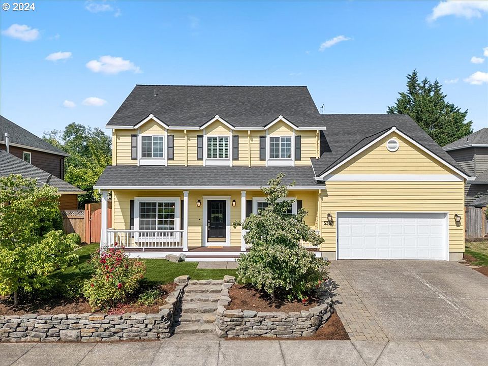 Light and bright and dream yard in Bethany. 2,688 Sq Ft. 3 Bedrooms + Bonus + Flex space and 3 Full Bathrooms. Formal living and dining with hardwood floors and new designer lighting. Kitchen with granite, new appliances and pantry opens to great room with built-ins and gas fireplace. Upstairs features primary suite with walk-in closet and 2 spacious bedrooms + large bonus. Incredible back yard with synthetic turf, putting green, sport court & covered patio with heater. Plus, newer modern shed/outbuilding with tongue & groove, electricity - perfect for office, workout room, music studio. New roof, Windows, Slider & Front Door (2021). New Exterior Paint (2022) Great schools - Sato/Stoller/Westview.