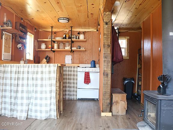 Here is your opportunity to own the true Alaska home. Nestled on over 8 peaceful acres, this adorable off-grid cabin provides views of sunsets over a large pond and plentiful wildlife. With a robust solar power system, private well and readily available wood supply, you can live economically with approximately $60 in monthly utilities and heating costs! Owner financing with agreed terms!