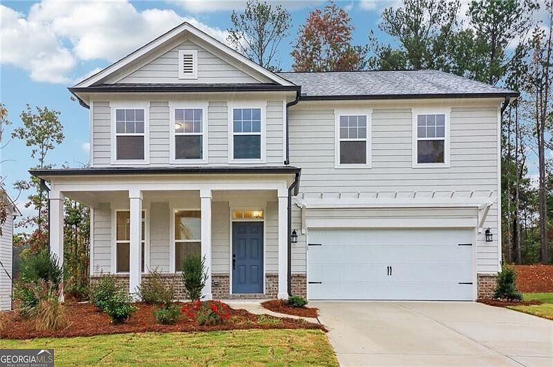 Presenting the Hampstead floorplan, a beautifully designed 2,843 sq. ft. home that blends luxury and comfort. This 5-bedroom, 3-bath residence offers both elegance and functionality, complete with a 2-car garage. At the heart of the home is an open-concept kitchen, featuring a large island, walk-in pantry, and a seamless flow into the family room and breakfast nook, which opens to a covered porch-perfect for outdoor entertaining and relaxation. A main-level guest retreat with a full bath adds convenience and privacy. Upstairs, a versatile loft provides additional living space, perfect for a media room or home office. Three spacious bedrooms, with walk-in closets, share a convenient Jack-and-Jill bath. The primary suite is a true sanctuary, boasting a double vanity, linen closet, separate tub, walk-in shower, and an expansive walk-in closet for a touch of luxury. Located in the prestigious Heron Bay community in Locust Grove, GA, this home offers an exceptional lifestyle with access to numerous amenities. Enjoy the scenic Lakefront Park, Heron Bay Golf and Country Club, and a variety of recreational options including an aquatic center, tennis courts, and nature trails. The community also features a fitness center and children's play areas, ensuring fun for all ages. Planned social events create a vibrant and connected atmosphere. Don't miss the opportunity to make this luxurious home in Heron Bay your own.