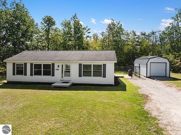 Move right into this 3 bedroom, 2 bath ranch offering 1,201 sq ft of comfortable single-level living on a private 0.62-acre lot. Recent updates include a new dishwasher, washer/dryer, and a storage shed, adding both convenience and function to the property. The open floor plan features cathedral ceilings, a bright living room, and a spacious eat-in kitchen with plenty of natural light. Set back from the paved road and surrounded by trees on three sides, the property offers both privacy and room to create gardens, outdoor living spaces, or even a future garage. Enjoy evenings on the back deck, or take advantage of nearby recreation with snowmobile trails just minutes away and easy access to the Inland Waterway, Crooked River, and Crooked Lake. Centrally located between Alanson, Petoskey, Harbor Springs, and Indian River, this move-in ready home is the perfect base for enjoying all that Northern Michigan has to offer.