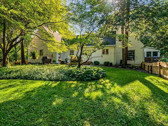 Elegant 1.5 Story Cottage-Style Home with finished walk-out basement, full of charm and updates throughout, beautiful private setting on 1 Acre! Total of 3,874sqft offers large foyer, living room with access to sunroom and deck, family room with fireplace that's open to the kitchen, half bath for guests, office, formal dining room, owner's suite on main level includes full bath and walk-in closet. All new kitchen with stainless steel appliances included, wine frig, quartz countertops, wraparound breakfast bar with extra sink. Upstairs has 3 spacious bedrooms, 1 full bath, walk-in closets, spacious attic room for storage. Lower level is walk-out with space for rec room or family room, plus laundry and storage rooms. Yard is professionally landscaped with brick patios, variety of areas for sitting and enjoying the outdoors in park-like setting. Updates include: all new kitchen and appliances, new roof and siding, new flooring throughout, new water heater, new fence, and much more!